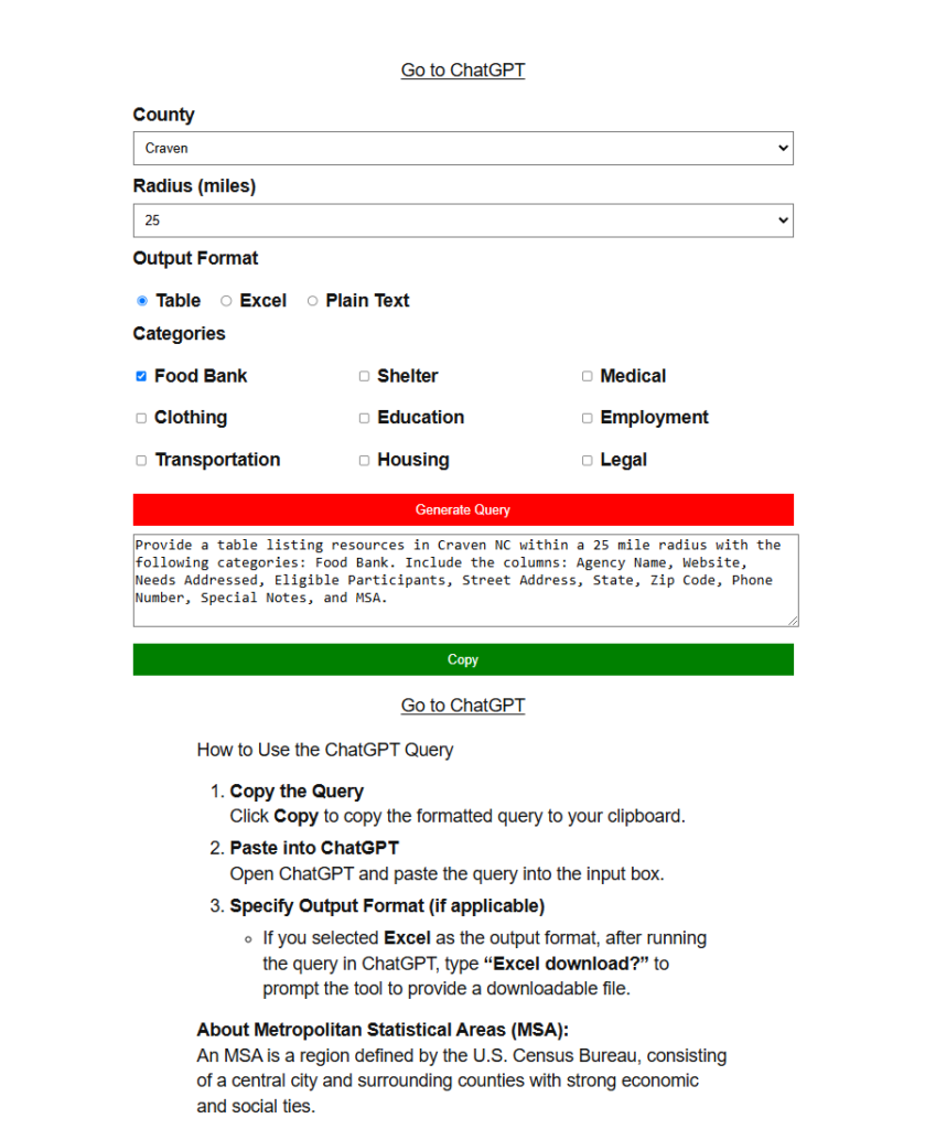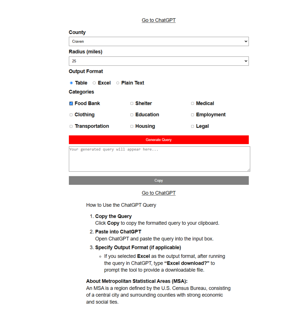 Click Copy to copy the formatted query to your clipboard. - Paste into ChatGPT